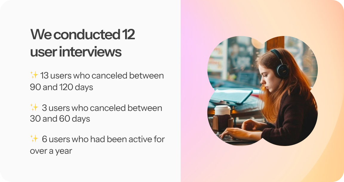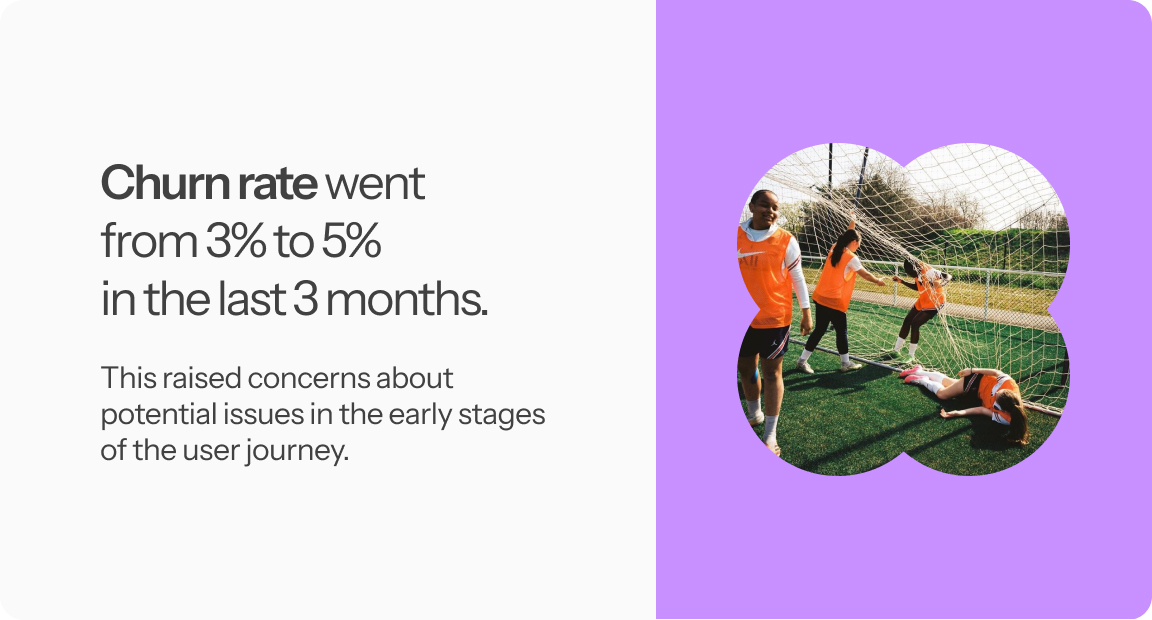 In one of our alignment meetings, the COO flagged a high churn rate: between 3% and 5% within just three months. This raised concerns about potential issues in the early stages of the user journey.