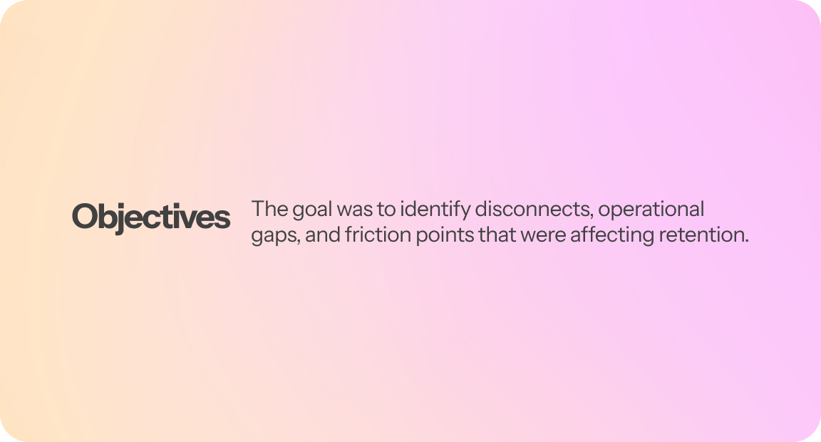 I proposed creating a Service Blueprint to map the user's journey alongside Yooga’s internal processes. This would help us identify disconnects, operational gaps, and friction points that were affecting retention.